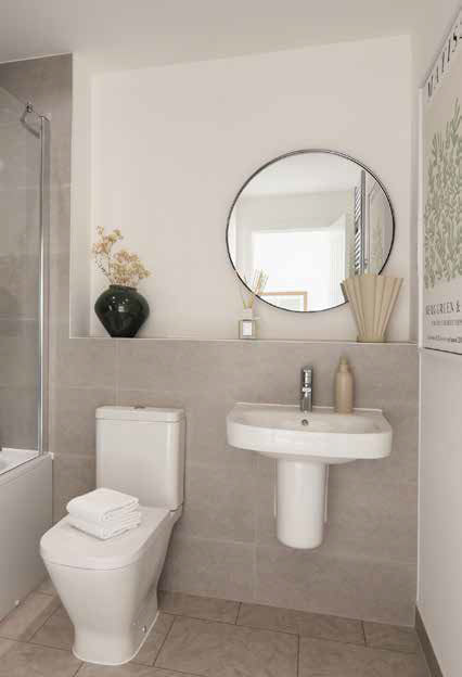 - Half height tiling^ around bath with low level handheld shower attachment in family bathroom and en suites (when there is a separate shower cubicle)*
